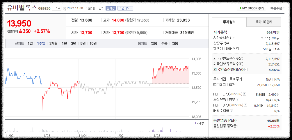 지난 10월 17일 유비벨록스모바일을 흡수 합병한 유비벨록스도 2.57% 오른 13,950으로 마감했습니다. 모바일 솔루션 전문업체인 유비벨록스는 스마트카드, 금융카드, 교통카드 등을 공급합니다.